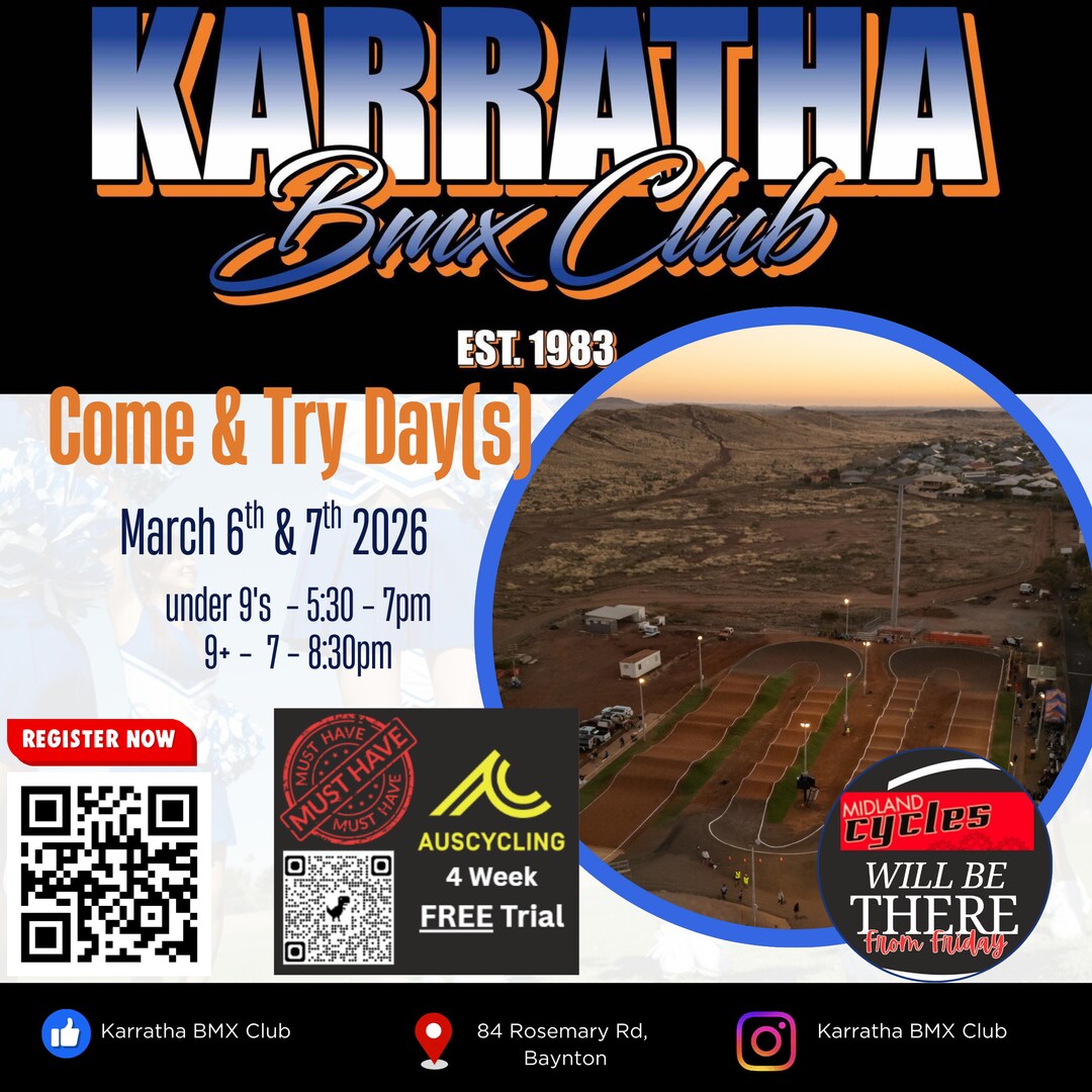 PLEASE NOTE you must jump on and sign up all riders for the FREE Auscycling 4week Trial Membership before you get there! PLEASE SCREENSHOT YOUR FREE MEMBERSHIP WHEN DONE AND BRING WITH YOU!